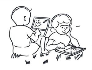 Cartoon kids on tablets